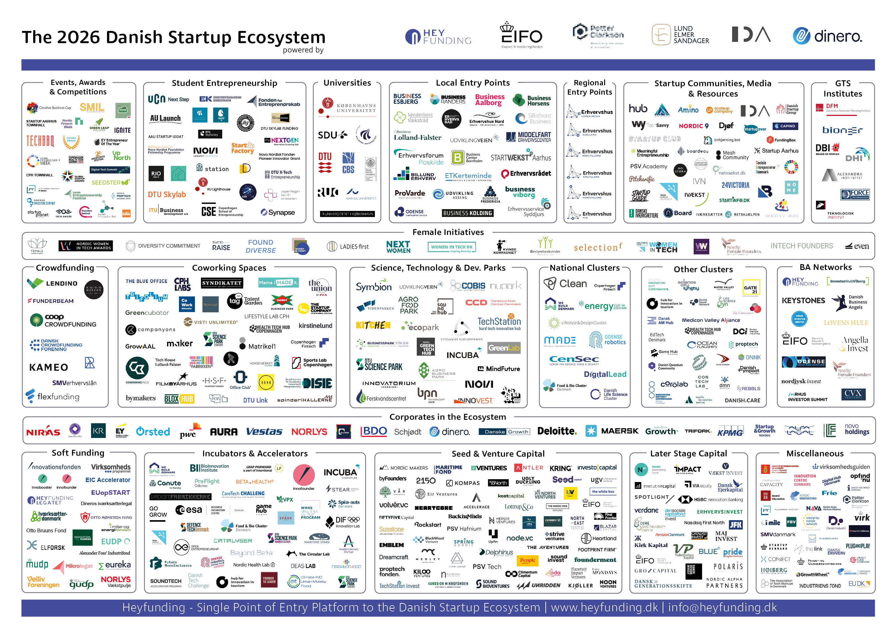 Det kan være svært at navigere i det dynamiske danske startup økosystem. Derfor kortlægger Heyfunding det foranderlige landskab 4 gange om året i en overskuelig infografik som du kan hente gratis nedenfor.
